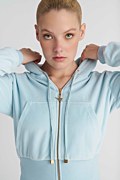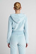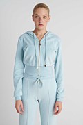 Μονόχρωμη κοντή βελουτέ ζακέτα με φαρδύ λάστιχο στη μέση. Διαθέτει κουκούλα με ρυθμιζόμενο κορδόνι, μπροστινές καγκουρό τσέπες και ανοιγόμενο φερμουάρ με επιχρυσωμένο λογότυπο. Η εφαρμογή της είναι άνετη και αν θες τέλειο στυλ συνδύασέ την με το παντελόνι 26811073. Το μοντέλο φοράει μέγεθος S: Ύψος: 1,78 εκ., Στήθος: 88 εκ., Μέση: 63 εκ., Περιφέρεια: 91 εκ.