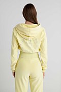 Μονόχρωμη κοντή βελουτέ ζακέτα με φαρδύ λάστιχο στη μέση, διακοσμημένη με στρας στο πίσω μέρος. Διαθέτει κουκούλα, μπροστινές καγκουρό τσέπες και ανοιγόμενο φερμουάρ με Sugarfree λογότυπο. Η εφαρμογή της είναι κανονική και αν θες τέλειο στυλ συνδύασέ την με το παντελόνι 26811073. Το μοντέλο φοράει μέγεθος S: Ύψος: 1,77 εκ., Στήθος: 83 εκ., Μέση: 62 εκ., Περιφέρεια: 89 εκ.