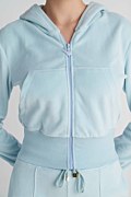 Μονόχρωμη κοντή βελουτέ ζακέτα με φαρδύ λάστιχο στη μέση, διακοσμημένη με στρας στο πίσω μέρος. Διαθέτει κουκούλα, μπροστινές καγκουρό τσέπες και ανοιγόμενο φερμουάρ με Sugarfree λογότυπο. Η εφαρμογή της είναι κανονική και αν θες τέλειο στυλ συνδύασέ την με το παντελόνι 26811073. Το μοντέλο φοράει μέγεθος S: Ύψος: 1,78 εκ., Στήθος: 88 εκ., Μέση: 63 εκ., Περιφέρεια: 91 εκ.