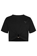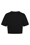 Κοντή, εφηβική βαμβακερή κοντομάνικη μπλούζα με στρογγυλή λαιμόκοψη, διακοσμημένη με στρας σε σχήμα καρδιάς και ένα κομψό στρογγυλό μεταλλικό αξεσουάρ στο μπροστινό μέρος που προσθέτει στυλ. Στενή γραμμή, ιδανική για καθημερινές εμφανίσεις με fashionable χαρακτήρα για τα κορίτσια μας.