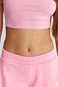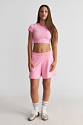 Μονόχρωμη εφηβική κοντή μπλούζα από ριμπ ύφασμα. Διαθέτει στρογγυλή λαιμόκοψη, κοντά μανίκια και τύπωμα 'Sugarfree Vibes' από αστραφτερά στρας στο μπροστινό μέρος. Στενή εφαρμογή. Πολύ κοντή σε μήκος. Ιδανική μπλούζα για τα κορίτσια μας, για να την φοράνε από το πρωί έως το βράδυ. Το μοντέλο φοράει μέγεθος 16, ύψος: 1,64 εκ.