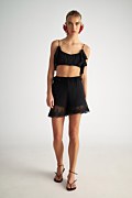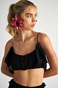 Ημιδιάφανη κοντή μπλούζα/μπουστάκι με δαντέλα. Διαθέτει αεράτο ύφασμα με διάτρητο, τρυπητό κέντημα, στρογγυλή λαιμόκοψη, λεπτές τιράντες και λεπτομέρεια με διακοσμητικά βολάν μπροστά και πίσω. Κανονική εφαρμογή. Πολύ κοντό σε μήκος. Το μοντέλο φοράει μέγεθος S: Ύψος: 1,73 εκ., Στήθος: 81 εκ., Μέση: 60 εκ., Περιφέρεια: 89 εκ.