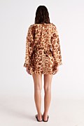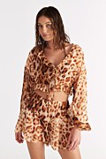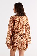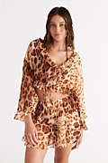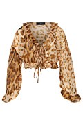 Κοντό ημιδιάφανο πουκάμισο με λεοπάρ τύπωμα σε όλο το ύφασμα. Διαθέτει βολάν, δετά κορδόνια στο μπροστινό μέρος, 'V' ντεκολτέ και 3/4 μανίκια. Χαραλή, άνετη εφαρμογή. Συνδύασέ το με το σορτς 25805701 και σίγουρα θα εντυπωσιάσεις με το τέλειο καλοκαιρινό look σου. Το μοντέλο φοράει μέγεθος S: Ύψος: 1,79 εκ., Στήθος: 81 εκ., Μέση: 61 εκ., Περιφέρεια: 90 εκ.