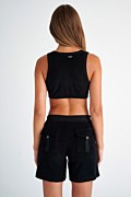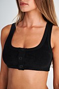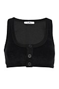 Εφαρμοστό, κοντό πετσετέ τοπ/μπουστάκι με στρογγυλή λαιμόκοψη και κουμπιά στο μπροστινό μέρος. Το μοντέλο φοράει μέγεθος S: Ύψος: 1,81 εκ., Στήθος: 88 εκ., Μέση: 62 εκ., Περιφέρεια: 91 εκ.