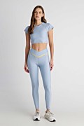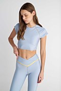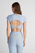 Κοντή αθλητική μπλούζα με διακοσμητικό σιρίτι. Διαθέτει κοντά μανίκια, στρογγυλή λαιμόκοψη, ενίσχυση στο στήθος με αφαιρούμενα cups και ανοιχτή πλάτη με στριφτή λεπτομέρεια στο πίσω μέρος. Είναι αρκετά ελαστική και ιδανική για γυμναστική και όχι μόνο. Η γραμμή της είναι στενή και ταιριάζει τέλεια με το κολάν 26845023. Το μοντέλο φοράει μέγεθος S: Ύψος: 1,77 εκ., Στήθος: 83 εκ., Μέση: 62 εκ., Περιφέρεια: 89 εκ.