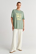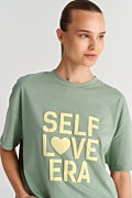 Κοντομάνικη βαμβακερή oversized μπλούζα με τύπωμα στο μπροστινό μέρος. Διαθέτει στρογγυλή λαιμόκοψη. Φαρδιά εφαρμογή. Φοριέται από το πρωί έως το βράδυ! Το μοντέλο φοράει μέγεθος S/Μ: Ύψος: 1,75 εκ., Στήθος: 80 εκ., Μέση: 60 εκ., Περιφέρεια: 90 εκ.