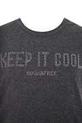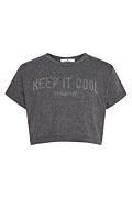 Εφηβική βαμβακερή κοντομάνικη μπλούζα με στρας στο μπροστινό μέρος. Διαθέτει στρογγυλή λαιμόκοψη και η γραμμή της είναι κανονική.