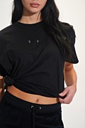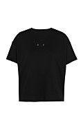 Μονόχρωμη, κοντομάνικη μπλούζα από οργανικό βαμβάκι, διακοσμημένη με μαύρα στρας στο μπροστινό μέρος. Διαθέτει στρογγυλή λαιμόκοψη. Κανονική εφαρμογή. Φοριέται από το πρωί έως το βράδυ! Το μοντέλο φοράει μέγεθος S: Ύψος: 1,75 εκ., Στήθος: 81 εκ., Μέση: 67 εκ., Περιφέρεια: 89 εκ.