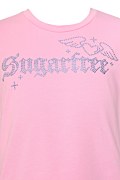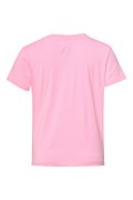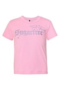Παιδική, βαμβακερή, κοντομάνικη μπλούζα με πολύχρωμα στρας στο μπροστινό μέρος. Διαθέτει στρογγυλή λαιμόκοψη και η γραμμή της είναι κανονική.