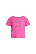 Παιδική, βαμβακερή, κοντομάνικη μπλούζα με στρας στο μπροστινό μέρος. Διαθέτει στρογγυλή λαιμόκοψη και η γραμμή της είναι κανονική.