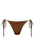 Xαμηλόμεσο μαγιό μπικίνι σλιπ. Διαθέτει μεταλλικά τρουκς στο μπροστινό μέρος με κορδόνι. Δένει με κορδονάκια στα πλάγια. Κανονική πίσω κάλυψη. Για ένα πιο ολοκληρωμένο look συνδύασέ το με το αντίστοιχο μπικίνι τοπ 25801728.