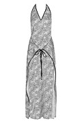 Mακρύ, αέρινο φόρεμα με σχέδιο λαχούρι σε όλο το ύφασμα. Διαθέτει κορδόνι που δένει στον αυχένα, ανοιχτή πλάτη, σκισίματα στα πλαϊνά και δέσιμο γύρω από τη μέση που κολακεύει τη σιλουέτα. Κλείσιμο με αόρατο φερμουάρ στο πίσω μέρος. Χαλαρή, άνετη εφαρμογή. Ιδανικό για τις καλοκαιρινές καθημερινές σου εμφανίσεις.