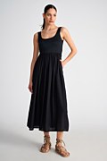 Μακρύ, μονόχρωμο φόρεμα με στρόγγυλη λαιμόκοψη και φαρδιές τιράντες. Κανονική εφαρμογή. Συνδύασε το με ένα ζευγάρι σανδάλια και γυαλιά ηλίου για μια κομψή, καλοκαιρινή εμφάνιση. Το μοντέλο φοράει μέγεθος S: Ύψος: 1,80 εκ., Στήθος: 81 εκ., Μέση: 63 εκ., Περιφέρεια: 91 εκ.