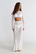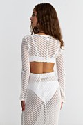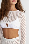 Διάφανη μπλούζα από πλεκτό ύφασμα με διάτρητο σχέδιο. Διαθέτει στρογγυλή λαιμόκοψη, μακριά μανίκια και iconic Sugarfree λογότυπο στο πίσω μέρος. Κοντή σε μήκος. Στενή εφαρμογή. Για εντυπωσιακές εμφανίσεις συνδύασε την με την φούστα 25805615. Το μοντέλο φοράει μέγεθος S: Ύψος: 1,76 εκ., Στήθος: 76 εκ., Μέση: 62 εκ., Περιφέρεια: 90 εκ.