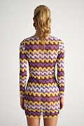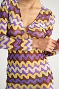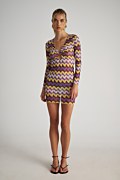 Διάφανο, κοντό φόρεμα/καφτάνι σε στενή γραμμή. Διαθέτει μακριά μανίκια, βαθύ 'V' ντεκολτέ και μοναδικό ζιγκ-ζαγκ τύπωμα. Ιδανικό ρούχο για τις καλοκαιρινές σου εμφανίσεις, για να το φοράς από το πρωί έως το βράδυ!