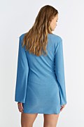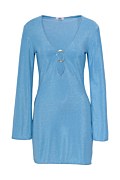 Μακρυμάνικο κοντό φόρεμα/καφτάνι σε γυαλιστερή υφή. Διαθέτει βαθύ 'V' ντεκολτέ και ένα κομψό μεταλλικό αξεσουάρ στο μπροστινό μέρος που προσθέτει μία δόση γοητείας στη συνολική εικόνα σου. Η γραμμή του είναι χαλαρή και άνετη. Ιδανικό φόρεμα για τις καλοκαιρινές σου εμφανίσεις! Το μοντέλο φοράει μέγεθος S: Ύψος: 1,76 εκ., Στήθος: 76 εκ., Μέση: 62 εκ., Περιφέρεια: 90 εκ.