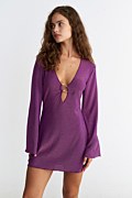 Μακρυμάνικο κοντό φόρεμα/καφτάνι σε γυαλιστερή υφή. Διαθέτει βαθύ 'V' ντεκολτέ και ένα κομψό μεταλλικό αξεσουάρ στο μπροστινό μέρος που προσθέτει μία δόση γοητείας στη συνολική εικόνα σου. Η γραμμή του είναι χαλαρή και άνετη. Ιδανικό φόρεμα για τις καλοκαιρινές σου εμφανίσεις! Το μοντέλο φοράει μέγεθος S: Ύψος: 1,76 εκ., Στήθος: 76 εκ., Μέση: 62 εκ., Περιφέρεια: 90 εκ.