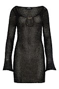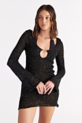 Μακρυμάνικο, πλεκτό ημιδιάφανο lurex κοντό φόρεμα, διακοσμημένο με διάσπαρτες παγιέτες σε όλο το ύφασμα. Διαθέτει ένα κομψό μεταλλικό Sugarfree αξεσουάρ στο μπροστινό μέρος που προσθέτει μία δόση γοητείας στη συνολική εικόνα σου. Κανονική εφαρμογή. Συνδύασε το με ένα ζευγάρι σανδάλια και γυαλιά ηλίου για μια κομψή, καλοκαιρινή εμφάνιση. Το μοντέλο φοράει μέγεθος S: Ύψος: 1,73 εκ., Στήθος: 81 εκ., Μέση: 60 εκ., Περιφέρεια: 89 εκ.