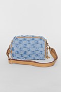 Μικρή τσάντα ώμου σε denim υφή με καρό τύπωμα σε όλο το μέρος της, ξέφτια και χρυσές λεπτομέρειες. Διαθέτει εξωτερική τσέπη με φερμουάρ και διακoσμητική αποσπώμενη αλυσίδα. Μπορεί να φορεθεί και χιαστί. Διαστάσεις: Μήκος 10 x Πλάτος 19 x Ύψος 14 εκ.
