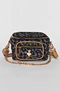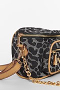 Μικρή τσάντα ώμου σε denim υφή με λεοπάρ τύπωμα σε όλο το μέρος του και χρυσές λεπτομέρειες. Διαθέτει εξωτερική τσέπη με φερμουάρ και διακoσμητική αποσπώμενη αλυσίδα. Μπορεί να φορεθεί και χιαστί. Διαστάσεις: Μήκος 10 x Πλάτος 19 x Ύψος 14 εκ.