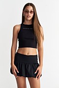 Μονόχρωμη, εφηβική μίνι φούστα με μπαλούν τελείωμα. Διαθέτει λάστιχο στη μέση για σταθερή εφαρμογή. Κανονική εφαρμογή για άνεση όλη μέρα. Το μοντέλο φοράει μέγεθος PXS, ύψος: 1,64 εκ.