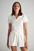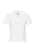 Κοντομάνικη, πετσετέ μονόχρωμη μπλούζα με γιακά. Διαθέτει 'V' λαιμόκοψη και iconic Sugarfree λογότυπο στο πλάι. Η εφαρμογή της είναι κανονική. Για τέλειο look συνδύασέ την με το σορτς 25810234. Ιδανική για όλες τις ώρες της ημέρας.