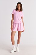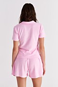 Κοντομάνικη, πετσετέ μονόχρωμη μπλούζα με γιακά. Διαθέτει 'V' λαιμόκοψη και iconic Sugarfree λογότυπο στο πλάι. Η εφαρμογή της είναι κανονική. Για τέλειο look συνδύασέ την με το σορτς 25810234. Ιδανική για όλες τις ώρες της ημέρας.