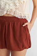 Μονόχρωμο σορτς σε στυλ balloon. Διαθέτει πλαϊνές τσέπες και κρυφό φερμουάρ στην πλαϊνή ραφή. Φουσκωτό τελείωμα με όγκο στα μπατζάκια. Η εφαρμογή του είναι κανονική και άνετη. Ιδανικό για καθημερινή χρήση. Το μοντέλο φοράει μέγεθος S: Ύψος: 1,76 εκ., Στήθος: 76 εκ., Μέση: 62 εκ., Περιφέρεια: 90 εκ.