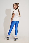 Μονόχρωμο, παιδικό, ελαστικό κολάν σε γυαλιστερή υφή. Διαθέτει λάστιχο στη μέση για σταθερή εφαρμογή. Διακοσμημένο με αστραφτερά στρας σε σχήμα καρδιά, στο μπατζάκι. Έχει στενή γραμμή και συνδυάζεται με όλα τα ρούχα των κοριτσιών μας. Το μοντέλο φοράει μέγεθος 8, ύψος: 1,30 εκ.
