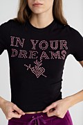 Κοντομάνικη βαμβακερή μπλούζα, διακοσμημένη με αστραφτερά στρας στο μπροστινό μέρος. Διαθέτει στρογγυλή λαιμόκοψη. Στενή εφαρμογή. Φοριέται από το πρωί έως το βράδυ! Το μοντέλο φοράει μέγεθος S: Ύψος: 1,78 εκ., Στήθος: 88 εκ., Μέση: 63 εκ., Περιφέρεια: 91 εκ.