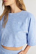 Oversized, πετσετέ κοντή μπλούζα με στρογγυλή λαιμόκοψη και μανίκι 3/4. Η εφαρμογή της είναι φαρδιά και άνετη. Ιδανική μπλούζα για να τη φοράς από το πρωί έως το βράδυ! Για τέλειο outfit συδύασέ την με το παντελόνι 25811155. Το μοντέλο φοράει μέγεθος S/Μ: Ύψος: 1,75 εκ., Στήθος: 84 εκ., Μέση: 62 εκ., Περιφέρεια: 90 εκ.