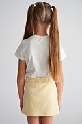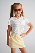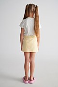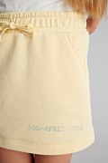 Παιδική βαμβακερή, μονόχρωμη μίνι φούστα σε εβαζέ γραμμή. Διαθέτει λάστιχο στη μέση με ρυθμιζόμενο κορδόνι για σταθερή εφαρμογή, πλαϊνές τσέπες και τύπωμα 'Sugarfree Vibes' από αστραφτερά στρας στο μπροστινό μέρος. Μια υπέροχη φούστα για να έχουν το τέλειo look τα κορίτσια μας κάθε φορά που την φοράνε!