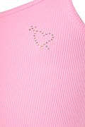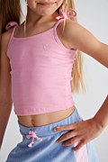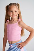 Παιδική, βαμβακερή ριμπ μπλούζα με λεπτές τιράντες και διακοσμητικούς φιόγκους για μια χαριτωμένη και κομψή εμφάνιση των κοριτσιών μας. Διακοσμημένη με αστραφτερά στρας σε σχήμα καρδιά, στο μπροστινό μέρος. Κανονική εφαρμογή. Φοριέται εύκολα από το πρωί έως το βράδυ, για παιχνίδι, βόλτα ή χαλάρωση!
