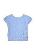 Μονόχρωμη παιδική πετσετέ μπλούζα. Διαθέτει στρογγυλή λαιμόκοψη, κοντά μανίκια, λάστιχο στη μέση με σχέδιο σφηκοφωλιά και iconic Sugarfree λογότυπο στο στήθος. Κανονική εφαρμογή.