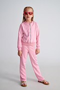 Παιδικό μονόχρωμο βαμβακερό σετ φόρμας με τύπωμα από πολύχρωμα στρας. Ζακέτα με γιακά και στρας στο μανίκι. Διαθέτει ριμπ λάστιχο στη μέση και στα μανίκια και κλείνει με φερμουάρ ουράνιο τόξο μπροστά. Βαμβακερό παντελόνι σε ίσια γραμμή. Διαθέτει λάσιχο στη μέση για σταθερή εφαρμογή, πολύχρωμα στρας στο μπατζάκι και patch τσέπες πίσω. Κανονική εφαρμογή. Ένα υπέροχο σετ για να έχουν το τέλειo look τα κορίτσια μας κάθε φορά που το φοράνε!