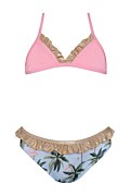Παιδικό μαγιό μπικίνι σετ με τύπωμα. Διαθέτει βολάν και κούμπωμα στην πλάτη. Σλιπ με μεγάλη πίσω κάλυψη.