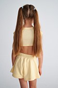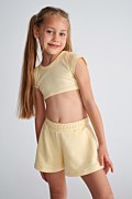 Παιδικό μονόχρωμο βαμβακερό σορτς. Διαθέτει λάστιχο στη μέση για σταθερή εφαρμογή με σχέδιο σφηκοφωλιά και πλαϊνές τσέπες. Διακοσμημένο με αστραφτερά στρας σε σχήμα καρδιά, στο μπατζάκι. Η εφαρμογή του είναι φαρδιά και άνετη. Για τέλειο look τα κορίτσια μας μπορούν να το συνδυάσουν με την κοντή μπλούζα 25612075.
