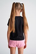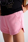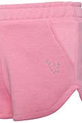 Παιδικό, μονόχρωμο, βαμβακερό φούτερ σορτς. Διαθέτει λάστιχο στη μέση για σταθερή εφαρμογή και πλαϊνές τσέπες. Διακοσμημένο με αστραφτερά στρας σε σχήμα καρδιά, στο μπατζάκι. Κοντό σε μήκος. Κανονική εφαρμογή.