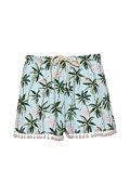 Παιδικό σορτς με τύπωμα σε όλο το ύφασμα και πον πον στο τελείωμα. Διαθέτει λάστιχο στη μέση με ρυθμιζόμενο κορδόνι για σταθερή εφαρμογή. Η εφαρμογή του είναι χαλαρή και άνετη. Το μοντέλο φοράει μέγεθος 6, ύψος: 1,20 εκ.