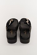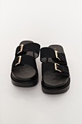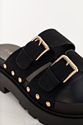 Πέδιλο/παντόφλα με λουριά. Διαθέτει αγκράφες στο μπροστινό μέρος και μεταλλικά τρουκς στα πλάγια. Στρογγυλή μύτη. Σόλα πλατφόρμας 5,5 cm.