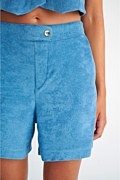 Μονόχρωμη πετσετέ βερμούδα σε φαρδιά γραμμή. Διαθέτει διακοσμητικό κουμπί στο μπροστινό μέρος, κρυφές πλαϊνές τσέπες στη ραφή και λάστιχο στο πίσω μέρος της μέσης για σταθερή εφαρμογή. Συνδύασέ το με το γιλέκο 24812099 και σίγουρα θα εντυπωσιάσεις με το τέλειο look σου. Το μοντέλο φοράει μέγεθος S: Ύψος: 1,77 εκ., Στήθος: 90 εκ., Μέση: 60 εκ., Περιφέρεια: 90 εκ.