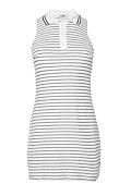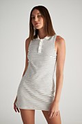 Αμάνικο πετσετέ μίνι φόρεμα με οριζόντιες ρίγες σε όλο το ύφασμα. Διαθέτει γιακά και τρία κουμπιά μπροστά. Κανονική εφαρμογή.