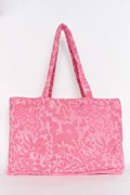 Μεγάλη πετσετέ τσάντα θαλάσσης ώμου με λεοπάρ τύπωμα σε όλο το μέρος της. Διαθέτει ενιαίο αποθηκευτικό χώρο με δύο εσωτερικές θήκες, μεγάλες λαβές και διακοσμητικό Sugarfree λογότυπο μπροστά. Κλείσιμο με μαγνητικό κλιπ. Διαστάσεις: Μήκος 15 εκ. x Πλάτος 60 εκ. x Ύψος 45 εκ.