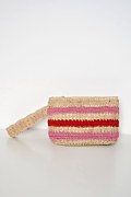 Ψάθινο τσαντάκι παραλίας με οριζόντιες ρίγες. Διαθέτει ενιαίο αποθηκευτικό χώρο με φόδρα στο εσωτερικό μέρος, λουράκι καρπού και ανοιγόμενο φερμουάρ στο επάνω μέρος. Οι διαστάσεις του είναι: Μήκος 9 εκ. x Πλάτος 27 εκ. x Ύψος 15 εκ.