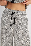 Ψηλόμεση παντελόνα με σχέδιο λαχούρι σε όλο το ύφασμα. Διαθέτει λάστιχο στη μέση για σταθερή εφαρμογή με ρυθμιζόμενο κορδόνι με διακοσμητικές φούντες, κρυφές πλαϊνές τσέπες στη ραφή και φαρδιά μπατζάκια. Χαλαρή, άνετη εφαρμογή. Για εντυπωσιακές καλοκαιρινές εμφανίσεις συνδύασε το με την μπλούζα 25806746. Το μοντέλο φοράει μέγεθος S: Ύψος: 1,79 εκ., Στήθος: 84 εκ., Μέση: 60 εκ., Περιφέρεια: 90 εκ.