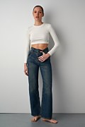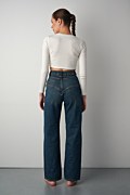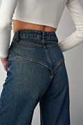 Ψηλόμεσο τζιν παντελόνι σε vintage στυλ, με όψη ξεβαμμένου που προσφέρει μια στυλάτη και κομψή εμφάνιση, απαραίτητο κομμάτι για κάθε γκαρνταρόμπα. Διαθέτει θηλιές για ζώνη, πέντε τσέπες, ίσια γραμμή και κλείσιμο μπροστά με μεταλλικά κουμπιά. Λεπτομέρεια από έντονα γαζιά σε αντίθεση. Ιδανικό για μια άνετη, casual εμφάνιση. Το μοντέλο φοράει μέγεθος 36: Ύψος: 1,76 εκ., Στήθος: 85 εκ., Μέση: 61 εκ., Περιφέρεια: 91 εκ.