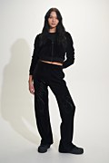 Ψηλόμεσο βελουτέ παντελόνι με φαρδύ μπατζάκι. Διαθέτει λάστιχο στη μέση για σταθερή εφαρμογή, πλαϊνές τσέπες και αστραφτερά στρας μπροστά. Η εφαρμογή του είναι χαλαρή και άνετη. Συνδύασέ το με την κοντή ζακέτα 25813036 και σίγουρα θα εντυπωσιάσεις με το τέλειο look σου. Το μοντέλο φοράει μέγεθος S: Ύψος: 1,76 εκ., Στήθος: 85 εκ., Μέση: 61 εκ., Περιφέρεια: 91 εκ.
