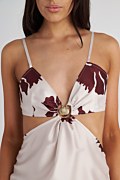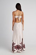 Mακρύ αέρινο σατέν φόρεμα με μοτίβο. Διαθέτει λεπτές ρυθμιζόμενες τιράντες, ανοιχτή πλάτη και δέσιμο στο πίσω μέρος. Χαλαρή, άνετη γραμμή. Ιδανικό για τις καλοκαιρινές, καθημερινές σου εμφανίσεις! Το μοντέλο φοράει μέγεθος S: Ύψος: 1,79 εκ., Στήθος: 80 εκ., Μέση: 62 εκ., Περιφέρεια: 92 εκ.