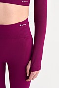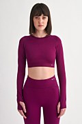 Κοντή αθλητική μπλούζα χωρίς ραφές με στρογγυλή κλειστή λαιμόκοψη και μακριά μανίκια. Διαθέτει υποδοχές για τους αντίχειρες στις μανσέτες που χαρίζουν ζεστή αίσθηση στα χέρια και σταθερή εφαρμογή των μανικιών. Είναι αρκετά ελαστική και ιδανική για γυμναστική και όχι μόνο. Η γραμμή της είναι στενή και ταιριάζει τέλεια με το κολάν 24845060. Το μοντέλο φοράει μέγεθος S: Ύψος: 1,79 εκ., Στήθος: 81 εκ., Μέση: 62 εκ., Περιφέρεια: 90 εκ.
