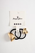Σετ 2 λαστιχάκια μαλλιών διακοσμημένα με χρυσές μεταλλικές λεπτομέρειες, σε σχήμα καρδιάς και ακανόνιστου σχήματος. Ιδανικά για καθημερινή χρήση ή ιδιαίτερες περιστάσεις.